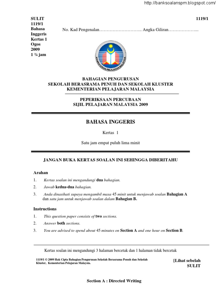 2015 Spm Trial Paper English Paper 1 Sbp Pdf
